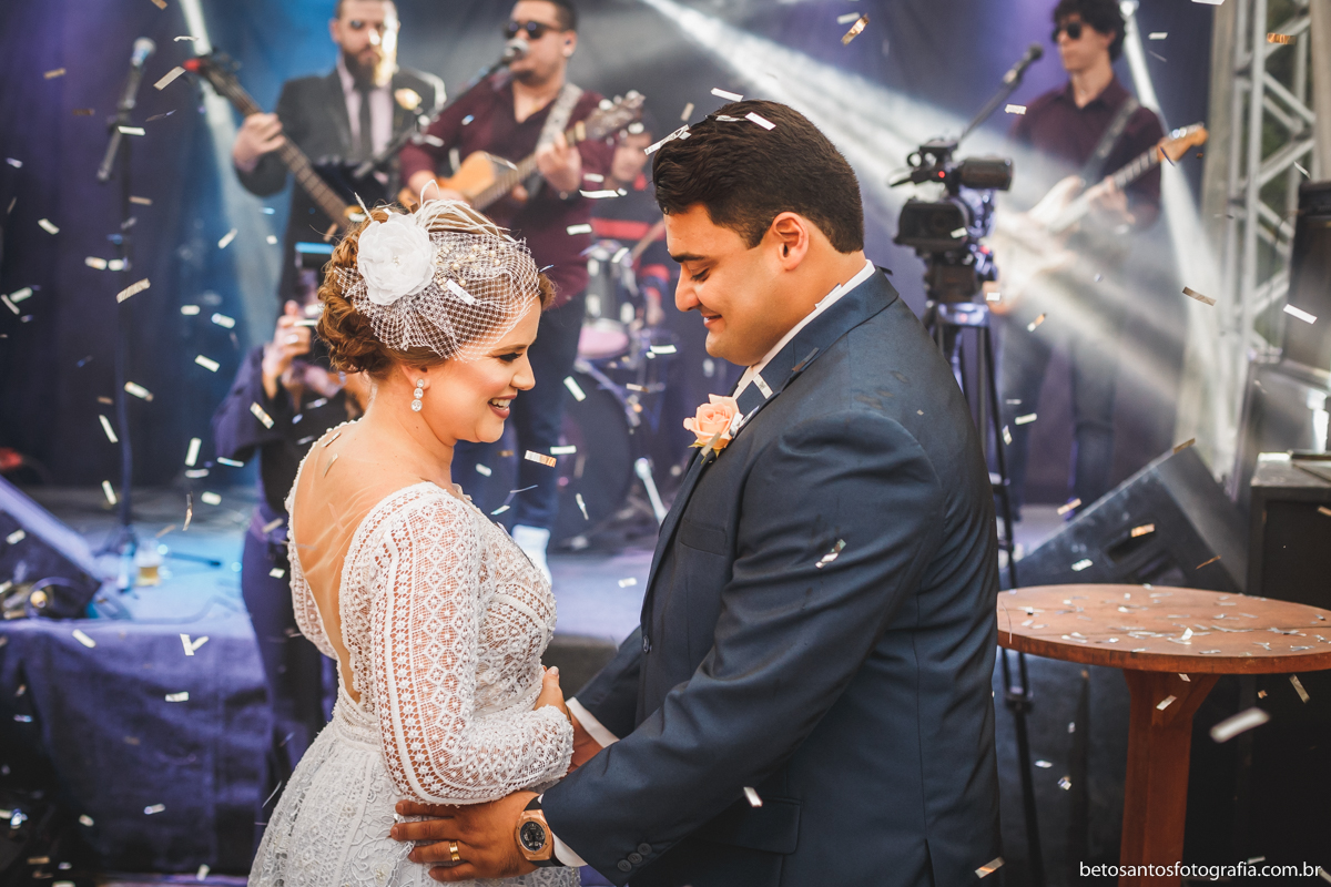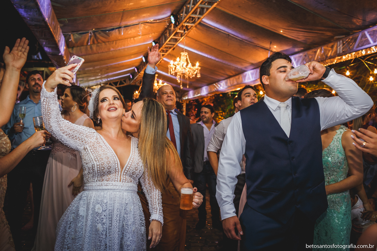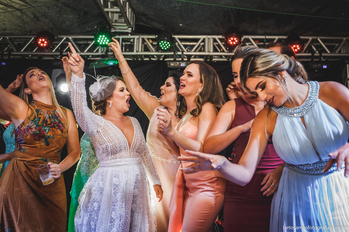 Amigos e familiares juntos à Ayanna e João Matheus após a celebração do matrimônio ao som de duas bandas incríveis que animaram até o último acorde em um cemário lindo e aconchegante que não deixou ninguém parado.