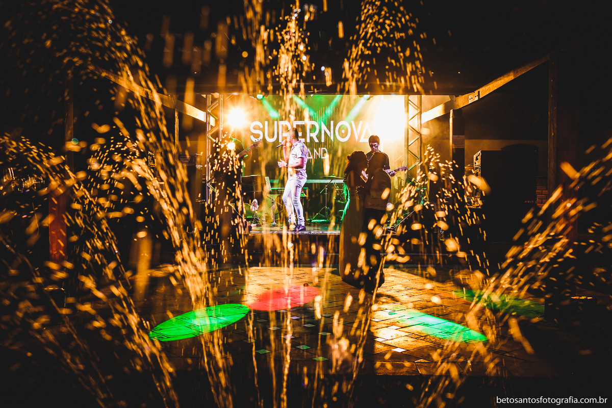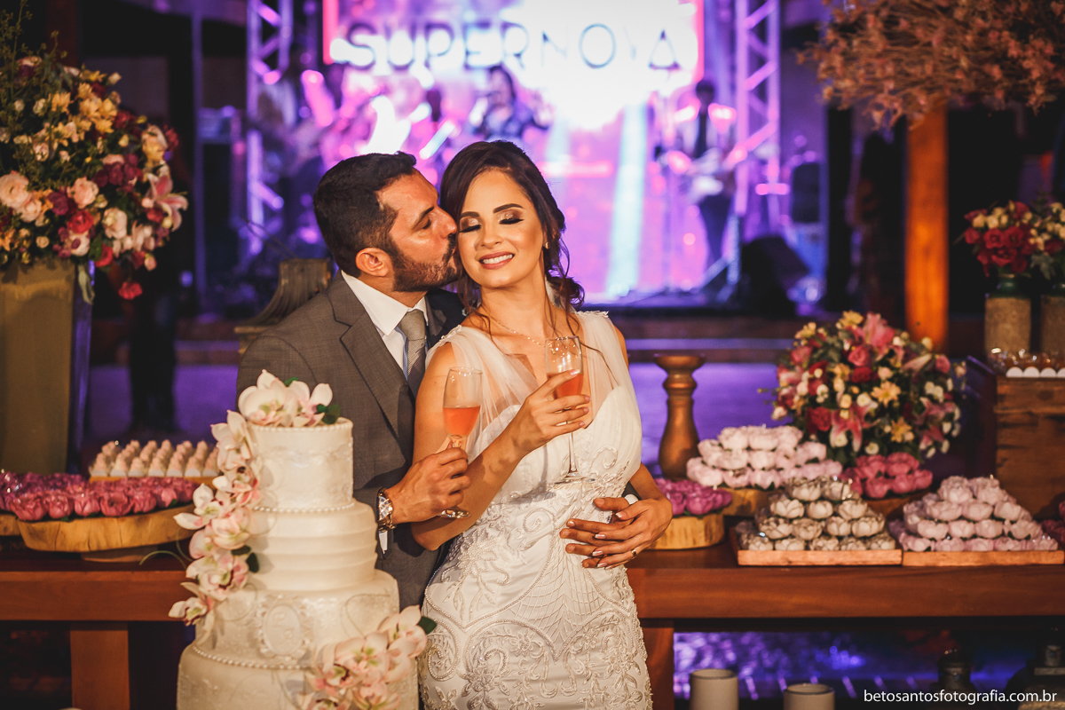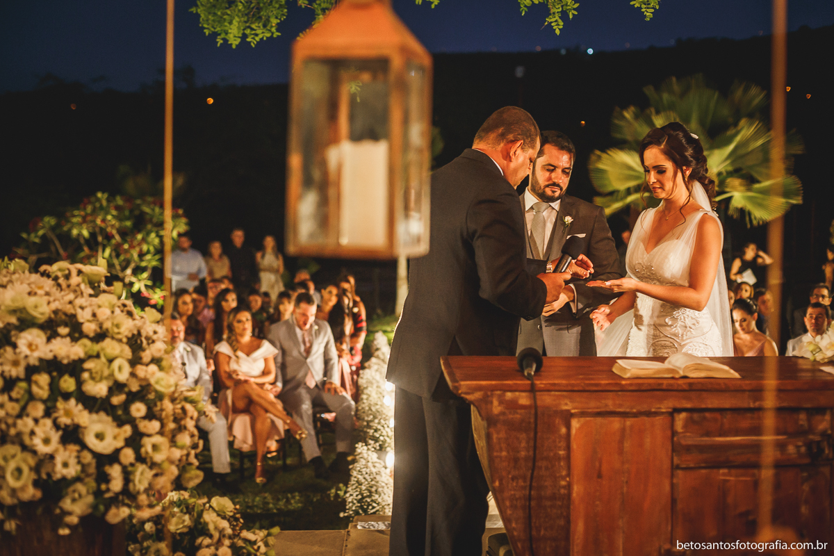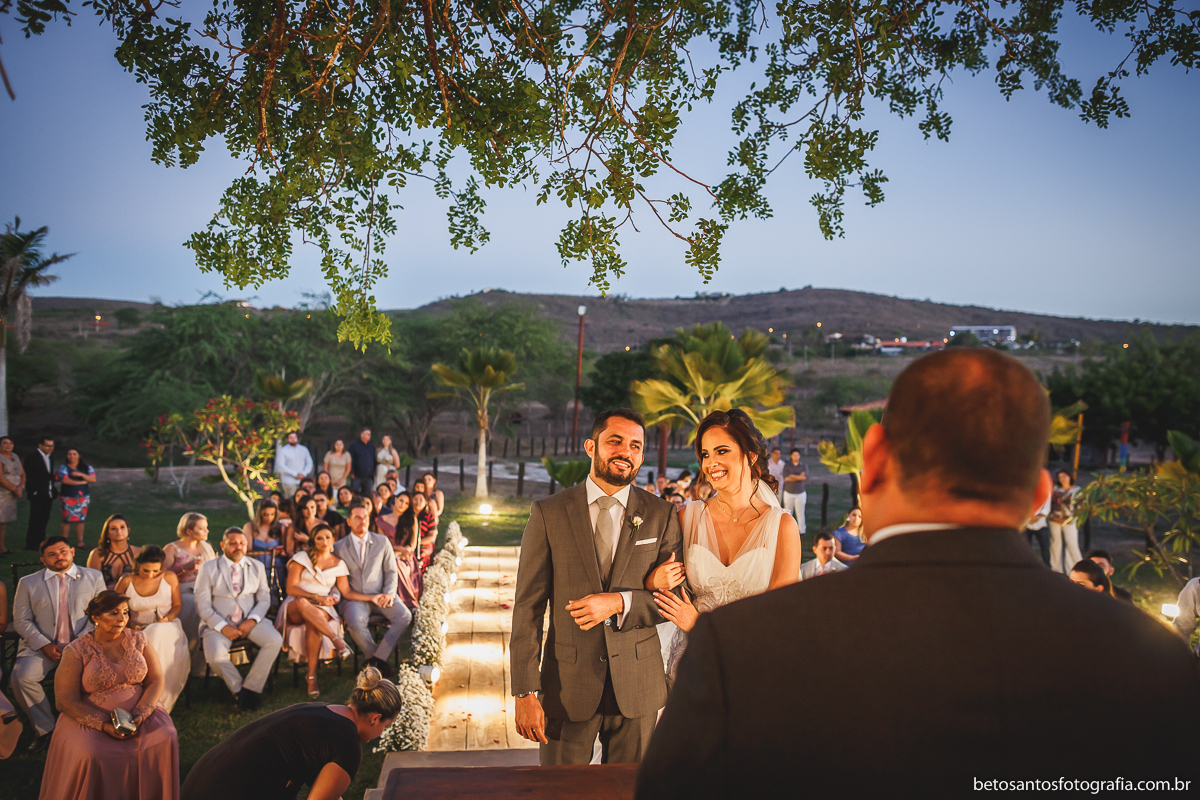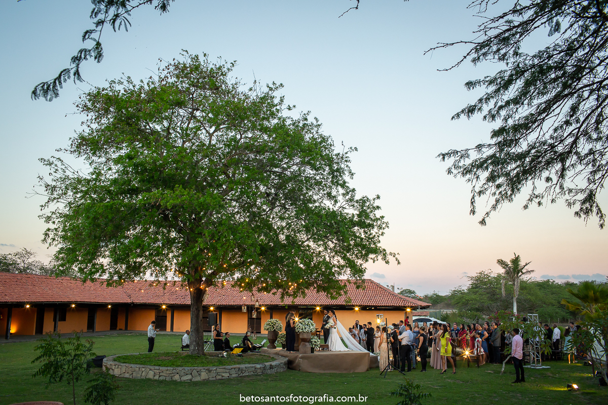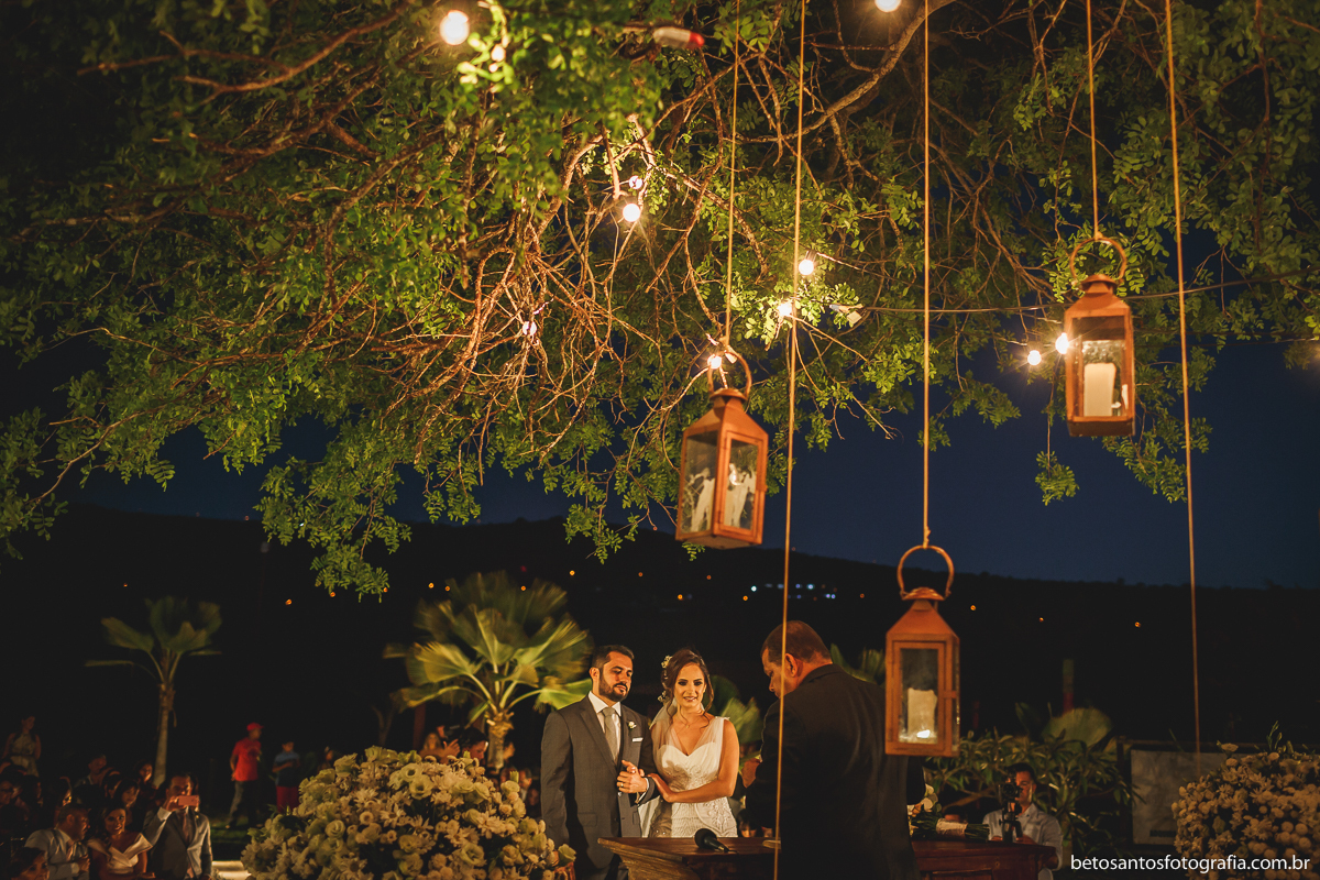 Escolha muito certeira do casal Patrícia e Arilson entre local e horário da cerimônia de seu grande dia, opção por casar ao ar livre e no final da tarde.